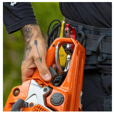 Dafür kann man den Verschluß in geöffnetem Zustand fixieren und es passt ein großer Motorsägengriff hinein!