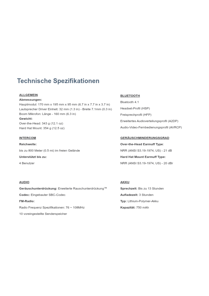 Bluetooth Intercom mit Gehörschutz, für den Helm oder als Bügel.