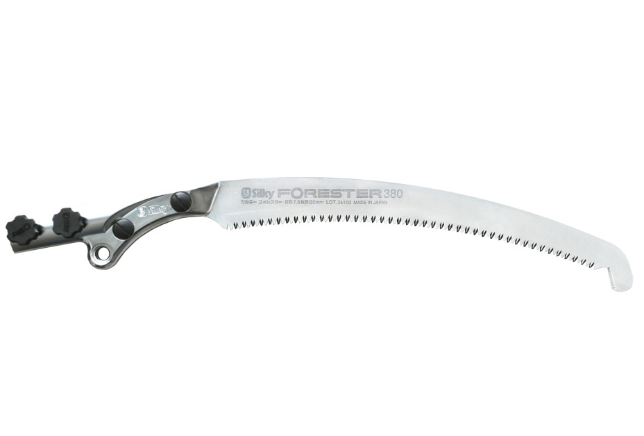 Leichte und kompakte Alu-Stangensäge von Silky mit einem Sägeblatt das stark dem der Zübat 390 ähnelt, ebenso der Köcher.